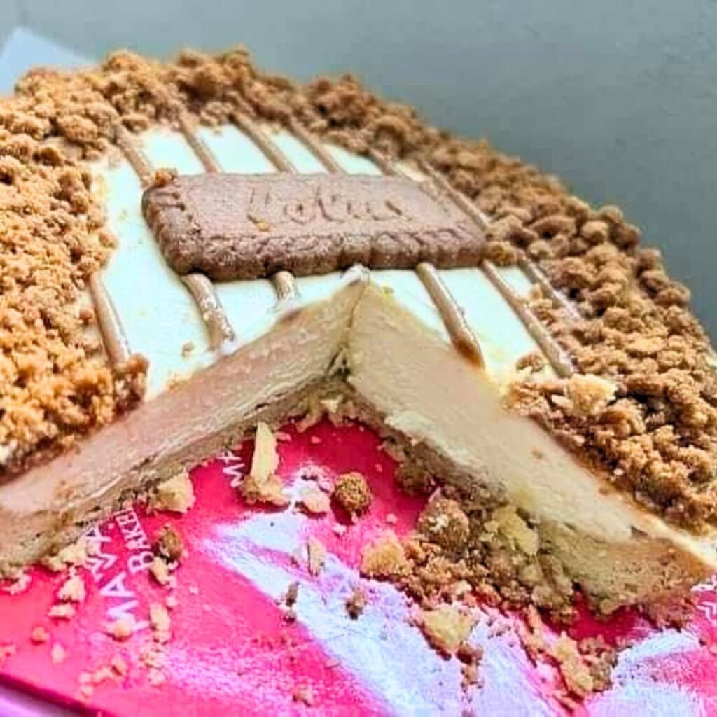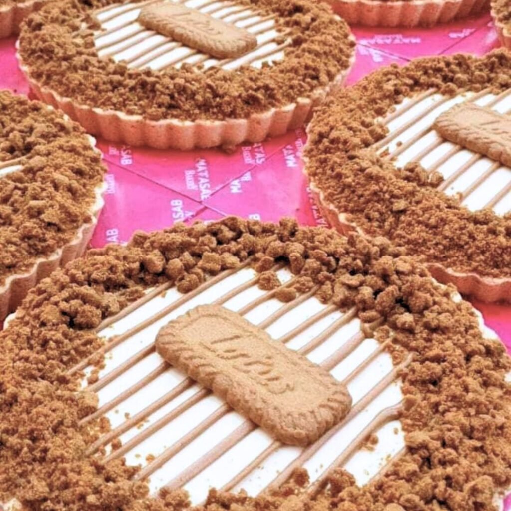 Cheese tart yang lemak2 manis, cair di mulut – dipenuhi cream cheese yang sangat tebal dengan topping biscoff lotus spread dan crumbs disekelilingnya.