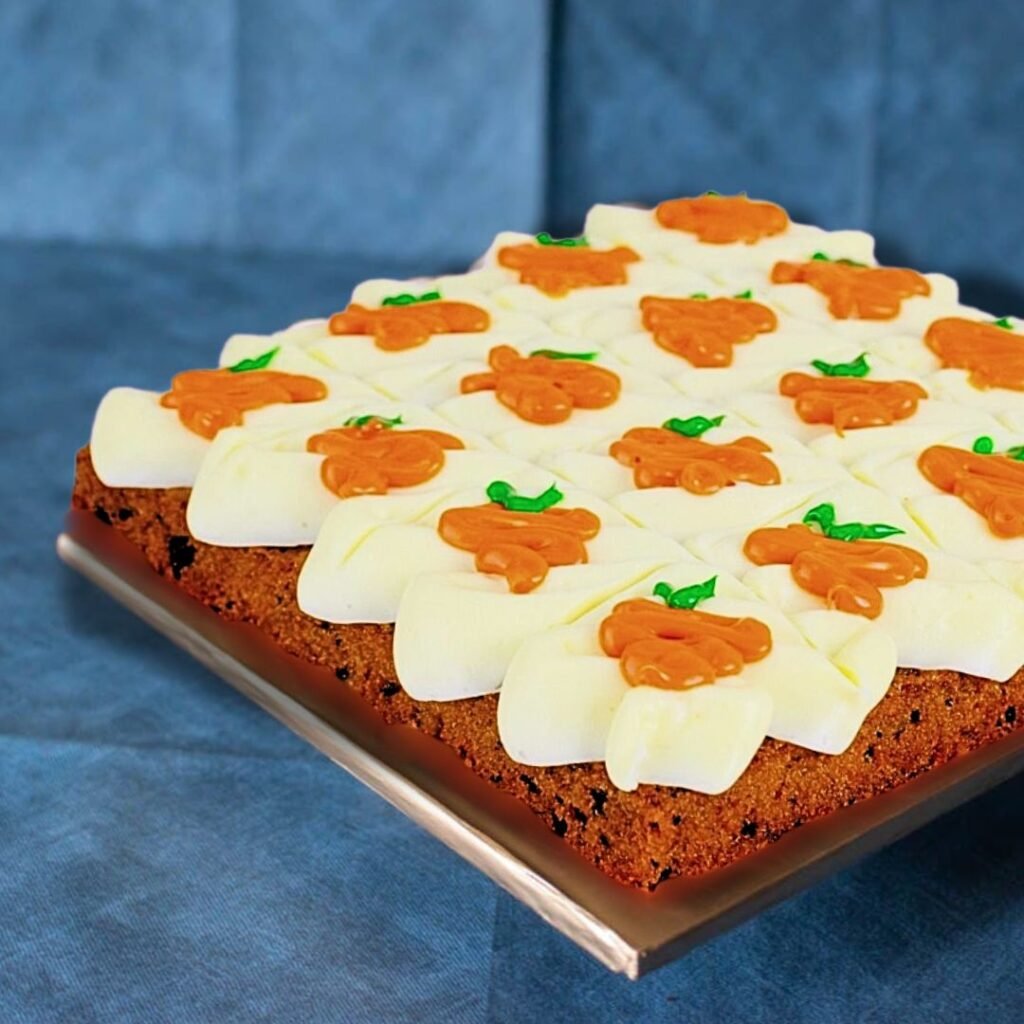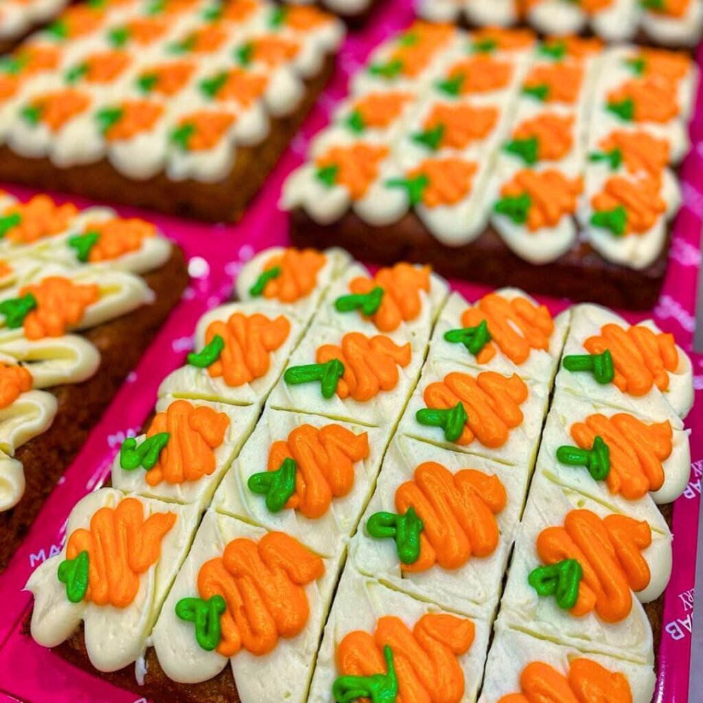 Carrot cake yang mengandungi parutan pure carrot, kacang walnut, gula perang, perahan lemon, serbuk kayu manis dan topping cream cheese yang istimewa.