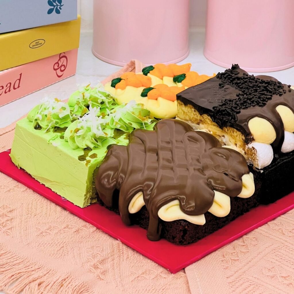 Tak tahu mana kek Mamasab nak cuba? Kek combo ini ada 4 flavour paling viral di mamasab – 1/4 extravaganza melting chocolate cake – 1/4 pandan gula melaka coated – 1/4 carrot cake – 1/4 red velvet full mamatella.