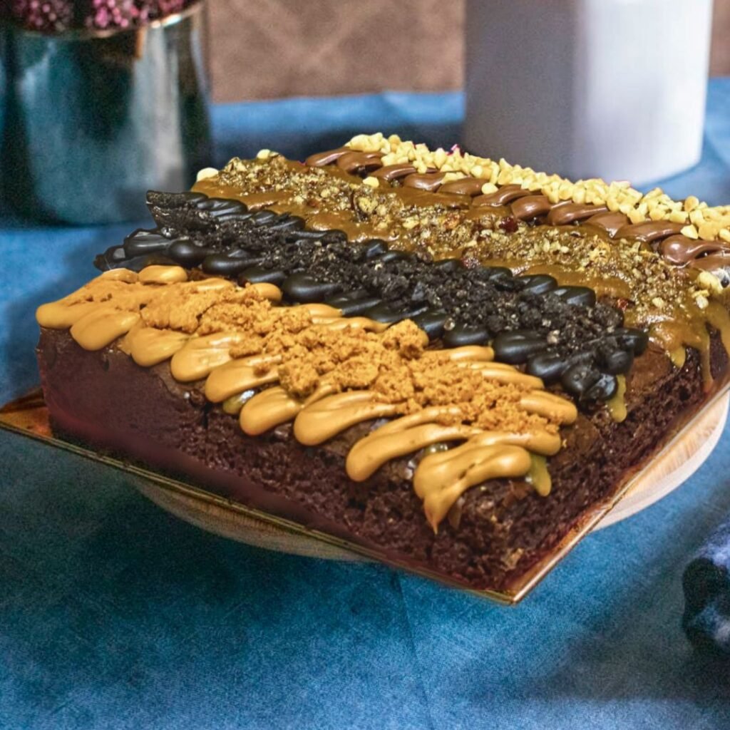 Rasa brownies yang lagi padu – extra drizzle dengan salted caramel dan chocolate mamatella. Diperbuat 70% coklat Beryls.