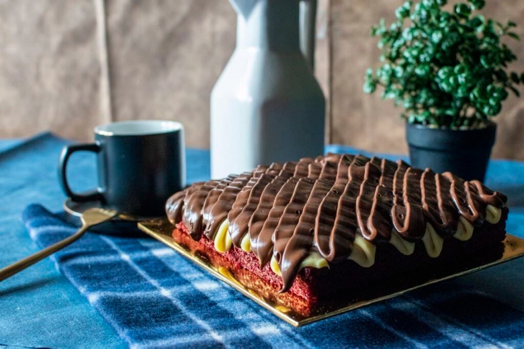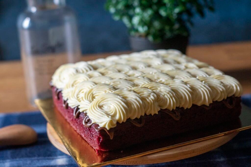 Kek red velvet yang moist dengan layer cream cheese diatasnya dan tengah² drizzle mamatella. Sesuai untuk yang suka cheese dan tak manis sangat.